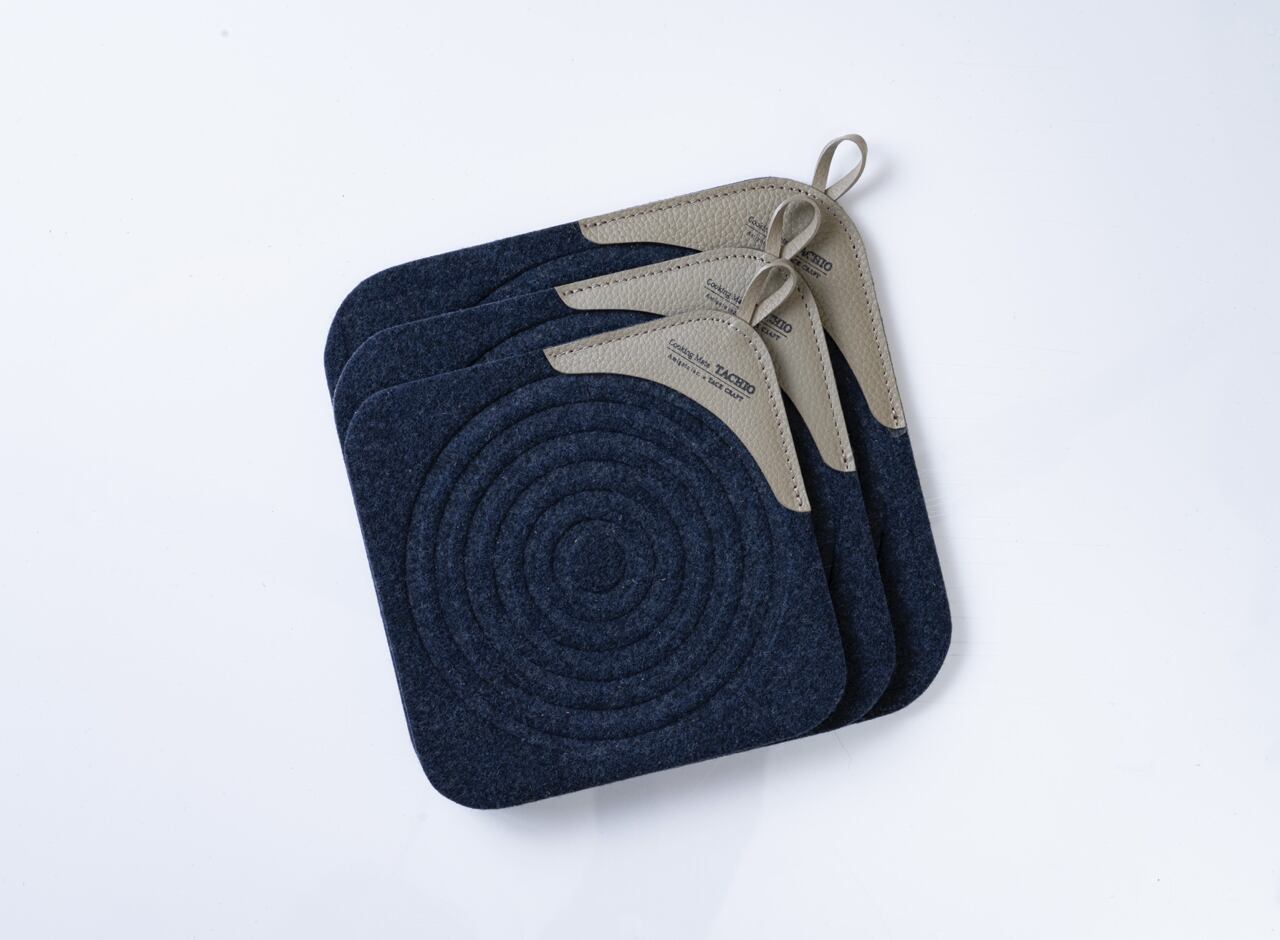 フェルトで作ったスクエア形の鍋敷き&ポットマット